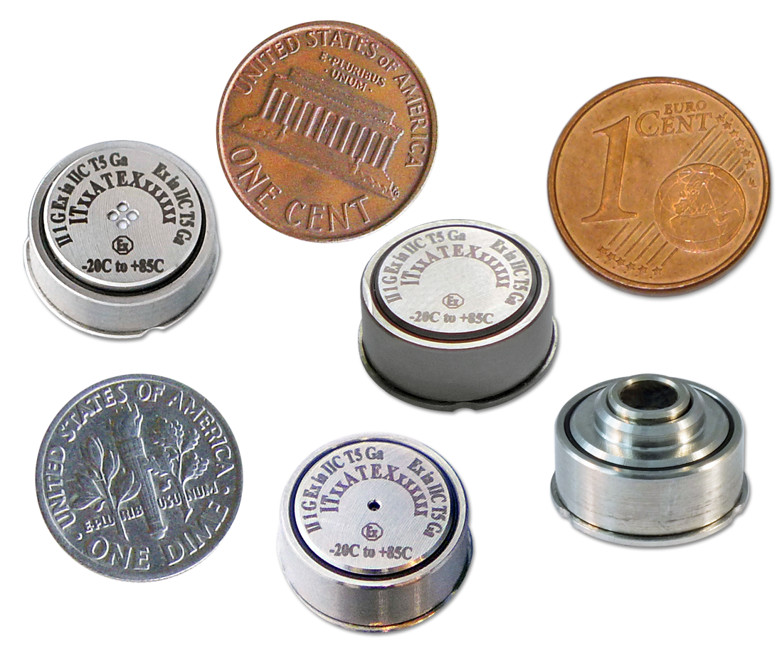 PyroButton-XiTHP (PBXi/THP) Calibrated High Precision Pressure, Humidity and Temperature data-logger Intrinsically Safe. Minimum quantity purchase is 10. Dimensions: 17 mm diameter x 7.5 mm height Sensor and electronics are housed in a 304 ss food grade housing (i.e., FDA approved for use in food processing).